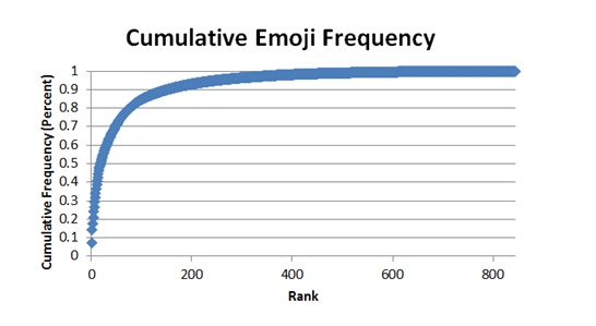 Although the rule was originally derived to explain patterns of word usage in the English language by Harvard-trained linguist George Zipf, Zipf’s Law applied to other natural languages and even extends to areas of Biology, Physics and Sociology. My question was: does it also hold for emoji usage?